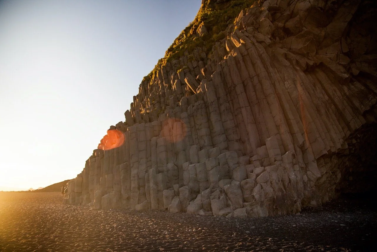 Also located on the beach is a cave known as Halsanefshellir. This cave is formed by hexagonally-shaped basalt columns, formed by active volcanoes many years ago. It is popular amongst tourists to climb atop these columns for photo-ops. As a chemist, I find it so interesting how these basalt columns form perfect hexagons. It has to do with the energetic stability of these columns and their preference to form hexagons, that predominate over other shapes, as the columns cools from a liquid (lava) to solid.