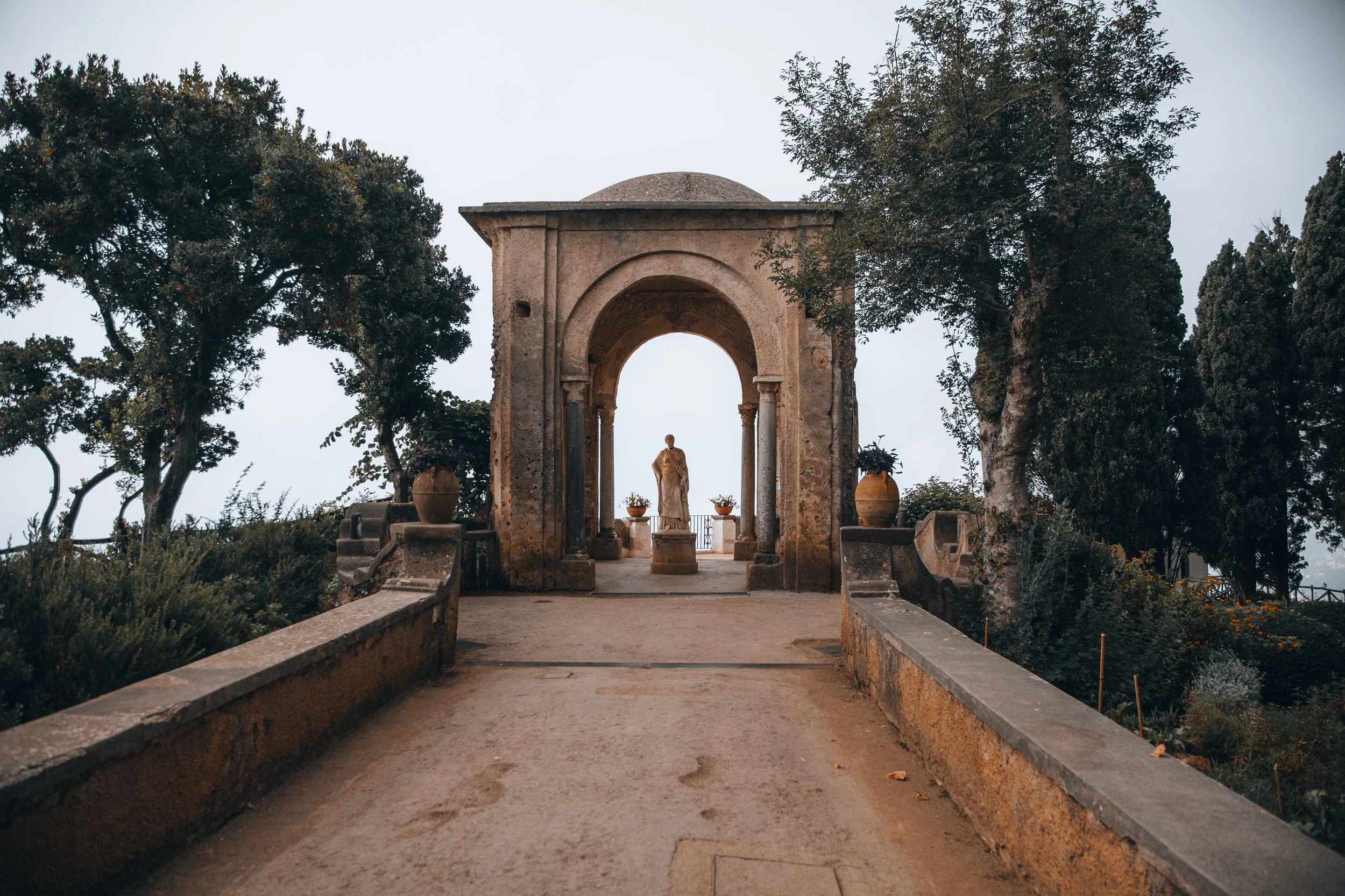 When I did my research, looking into what to see in the Amalfi Coast, I must admit that Ravello, the village that hosts the Villa Cimbrone Gardens wasn’t on my radar. This is probably because Ravello is one of the only villages that doesn’t sit on the Amalfi coastline, but sits higher up in the cliffside. Nonetheless, at the recommendation of an Italian who stated that the gardens are some of the most beautiful he has seen in his life, I knew we had to make a stop here.