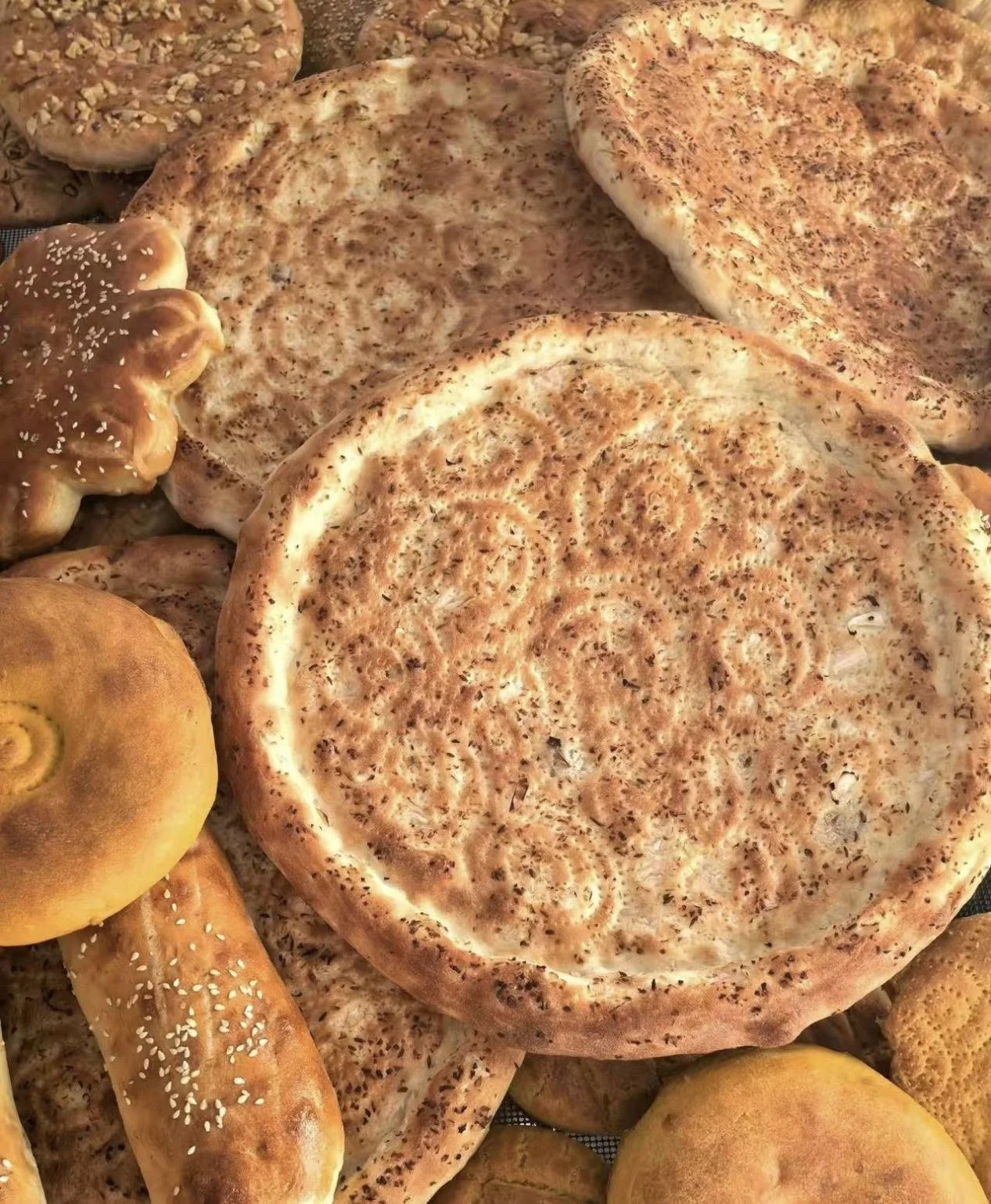 Nang, meaning bread, is thick and durable for storage. It is one of the staple foods in Xinjiang. There are various kinds of nang, oil, sesame, onion, and rose nang.